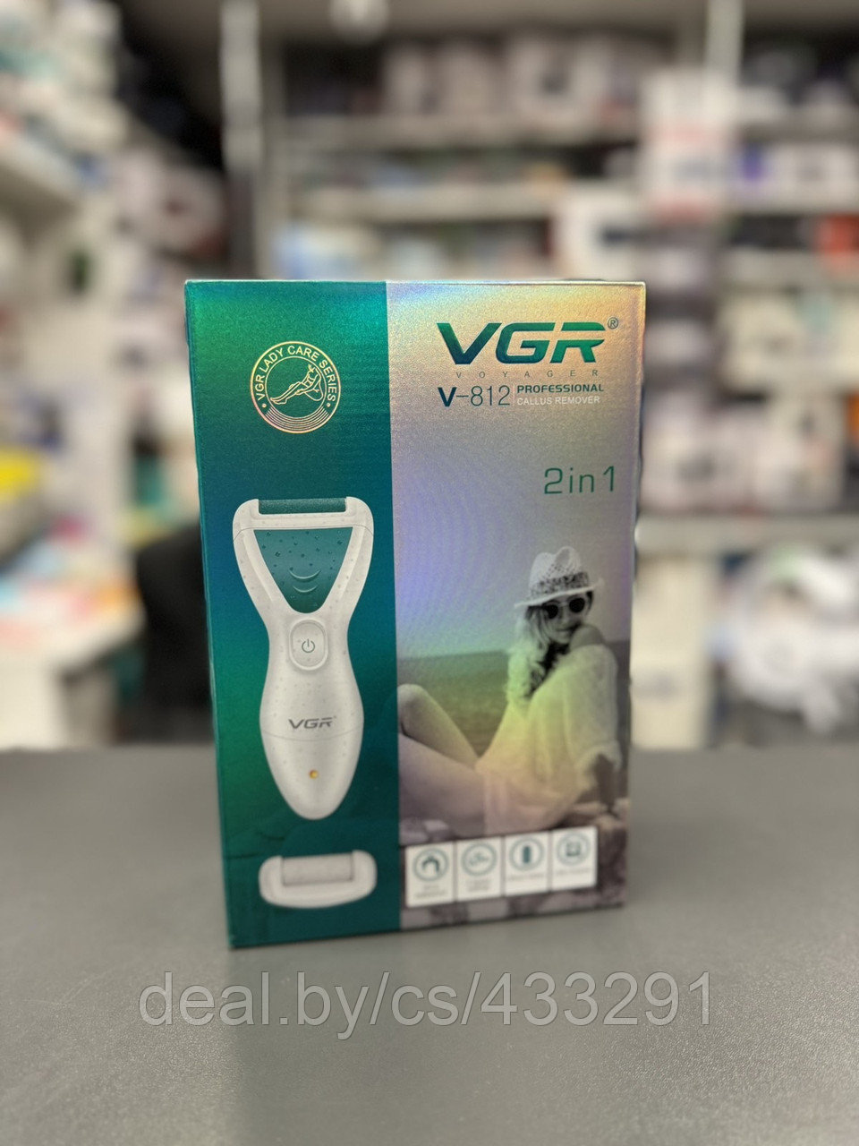 Электрическая роликовая пемза VGR V-812 с 2 насадками для удаления сухой и огрубевшей кожи на ступнях, для педикюра, красоты и ухода за телом.